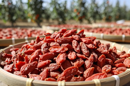 采摘下来的枸杞就要进行晾晒处理了。这晾晒可有讲究了,在晾晒的时候不能随便翻动枸杞。为啥呢?因为一翻动,枸杞就容易变黑,变黑后的枸杞不仅外观不好看,品质也会受到影响。所以啊,农民们把枸杞均匀地铺在晾晒场上,让它们静静地接受阳光的照射,慢慢地变干。这个过程需要一定的时间和耐心,但只有这样,才能得到品质优良的枸杞干果。
